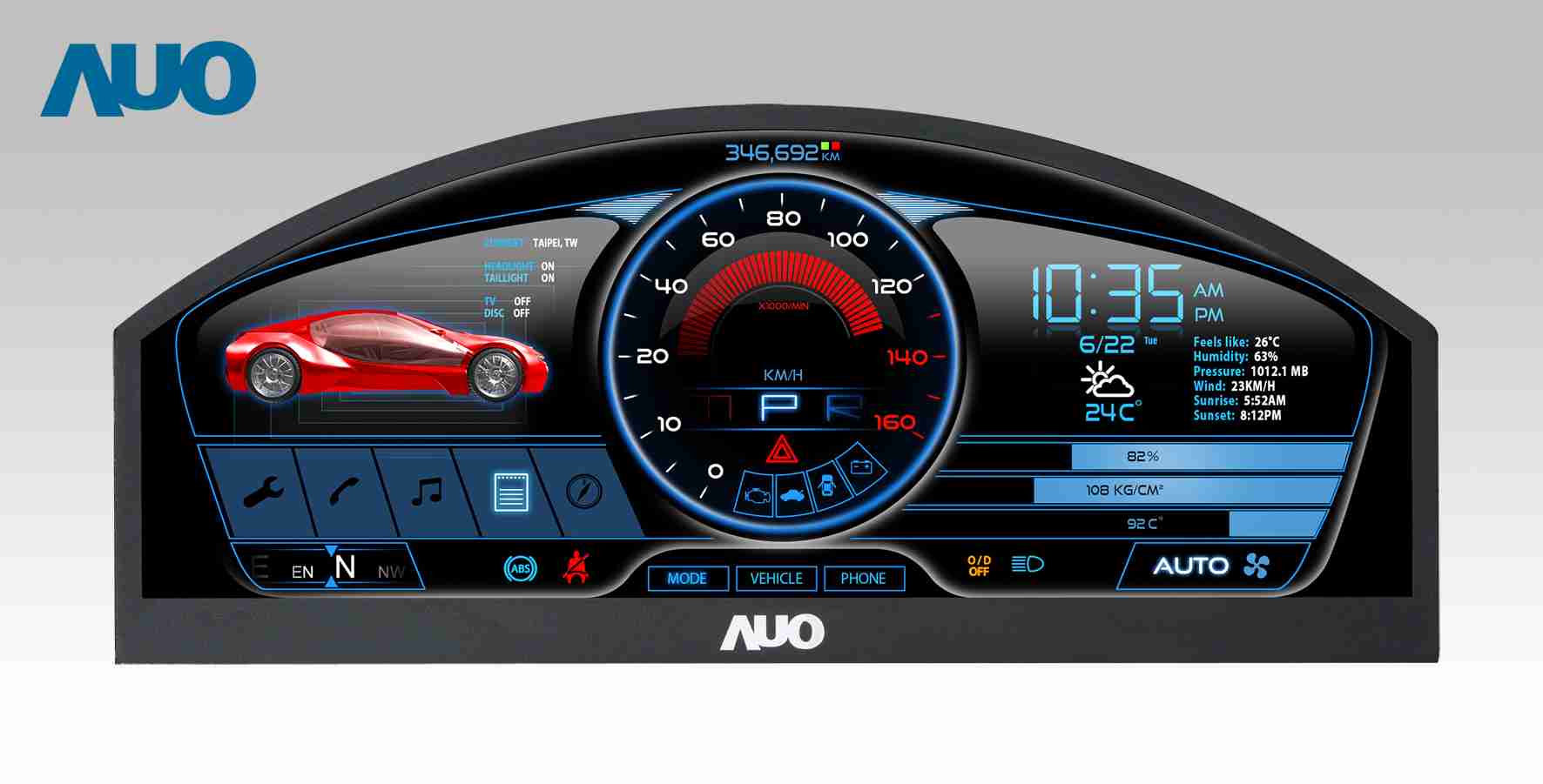传奇国际 12.3吋超高解析异型切割车用面板,,,拥有流线外观及精细画质