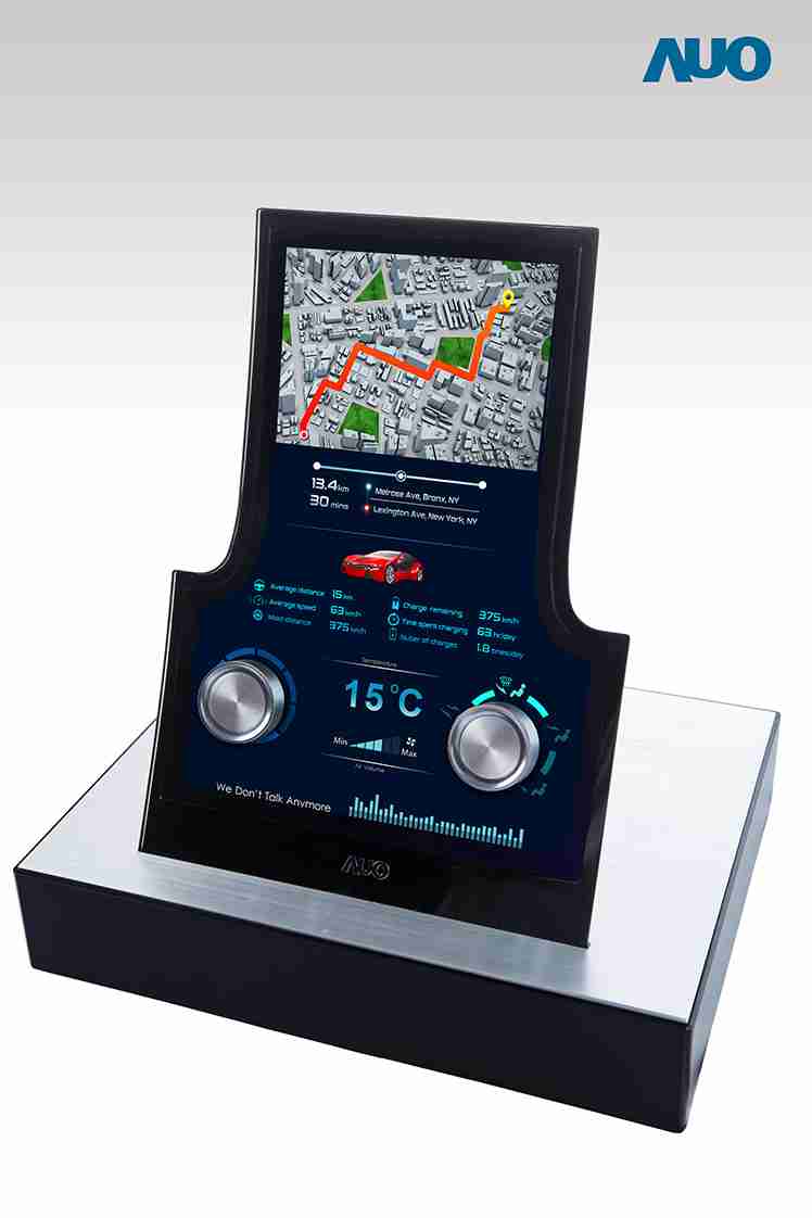 传奇国际近年来全力投入高性能车用显示屏的开发,,,,以因应智慧车发展趋势。。。。中控台应用方面,,,,传奇国际领先全球推出(*) 13.2寸异型切割显示屏,,具有 1200x1600 高分辨率、、、、NTSC 85% 高色彩饱和度及 1000nits高亮度,,,并改于显示区域设计闸极电路,,,以于显示屏侧边释出空间做异型切割。。。。同时显示区域亦特别设计对称的孔位可安装按键或旋钮,,,,创造更多设计弹性。。