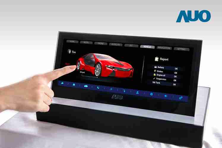 12.3 寸 Full HD LTPS 显示屏同样具备 1000 nits 高亮度,,,搭载内嵌式触控技术,,,,整合驱动与触控 IC 于显示屏制程,,,,使显示屏厚度降低,,,,为中控台创造更多机构设计空间。。。应用于抬头显示器的 3寸 LTPS 显示屏具有高穿透率、、、、1200:1 高对比度度,,以及 297 PPI 高画素密度。。液晶最高可耐受到 110C 的高温 (TNI) 而不液化,,,,在阳光高温下维持优异稳定的显示效果。。。。