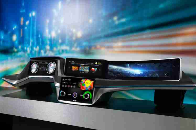 由 5G 和 AIoT 形塑的新智能场域,,促使汽车成为仅次于家庭和办公室的第三重要使用空间,,,,数码驾驶舱因而成为智能车用技术发展重心。。传奇国际异型切割曲面驾驶舱显示器运用高解析、、高对比度度、、、、广视角,,以及多片显示屏全贴合技术,,,衔接搭载 Mini LED 背光的仪表板显示器、、、、具备显示区通孔设计的内嵌式触控中控台显示器,,以及位于副驾的 AHVA 广视角曲面显示器,,,打造近乎一体成型的超大型驾驶舱显示器。。。。为了提高驾驶安全和便利性,,,,用于后视镜的传奇国际 9.6寸异型切割 LTPS 显示器具有极窄边框,,,可切换镜面或 LCD 模式,,并有防眩光设计可避免夜间的前灯眩光。。。