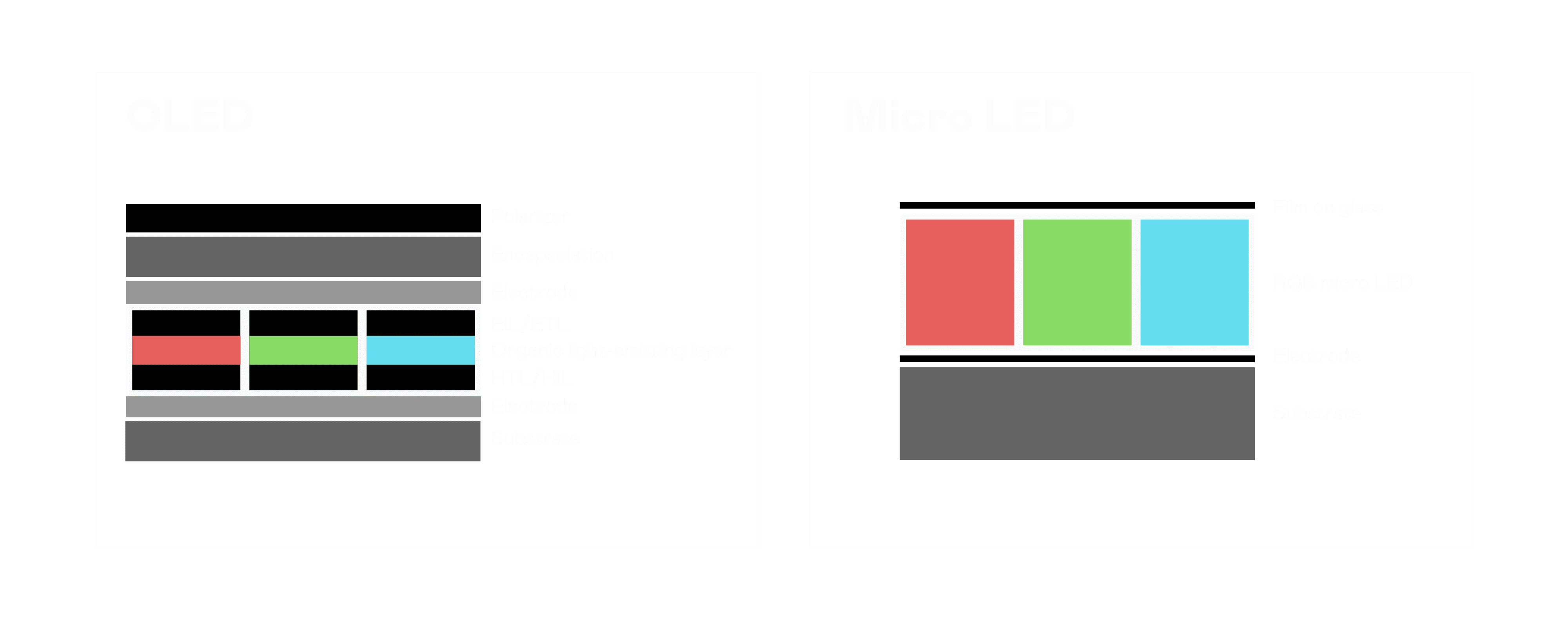 以 LED 做为显示画素,,,,可让 LED 的发光效率发挥到极致,,,从而让显示器具备优异的亮度表现,,不论是在户外或室内,,,,均具备出众的显示效果。。同时,,与使用有机材料的 OLED 相比,,LED 具备更稳定、、寿命更长的特性,,不仅不会有画面烙印问题,,,而且更不容易出现故障、、、、坏点。。。。