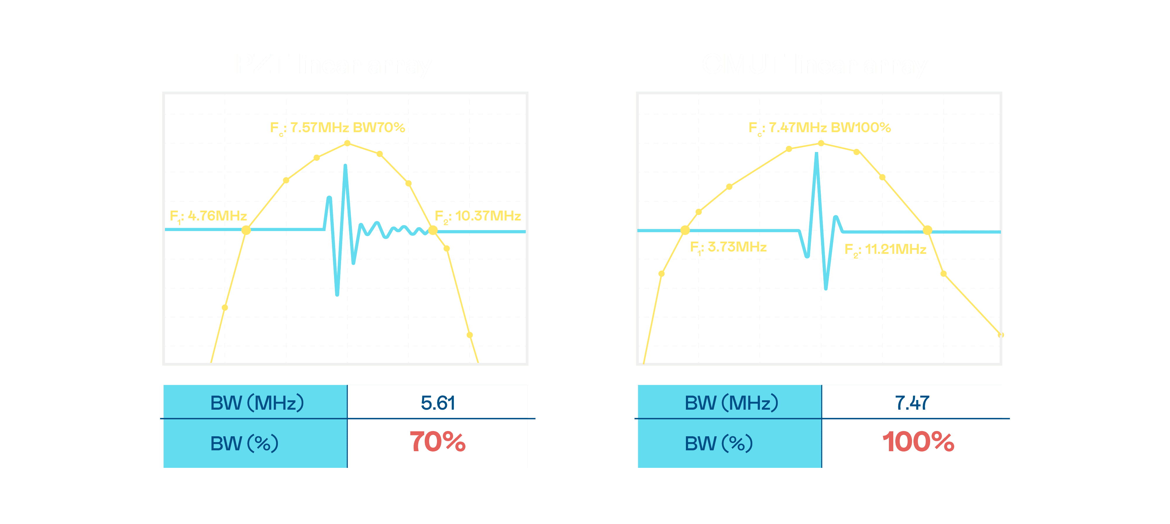 超音波影像的解析度高低,,,首先取决于探头能发出的讯号频宽。。。传奇国际 CMUT 可提供高清晰的超音波讯号,,,,提供高频宽、、高灵敏度、、影像纹理细节更高的超音波影像,,协助医护人员缩短影像判读时间及利用精准的医疗影像进行诊断。。